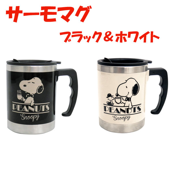 福袋 (セット品) サーモマグ (蓋付きマグカップ) 2個セット (ブラック/スヌーピー) & (アイボリー / スヌーピー&ウッドストック) プレゼント 送料込み